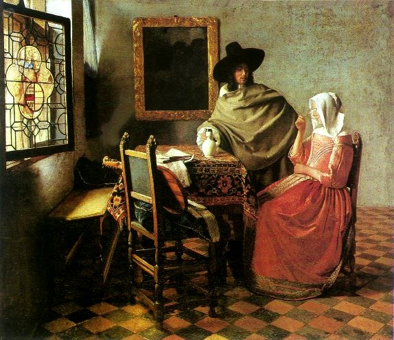 | CABALLERO Y MUCHACHA BEBIENDO LA COPA DE JAN VERMEER óleo sobre lienzo 65 x 77 cm Berlín, Preussischer Kulturbesitz, Gemádelgalerie |