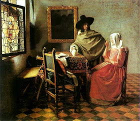 CABALLERO Y MUCHACHA BEBIENDO  LA COPA DE JAN VERMEER