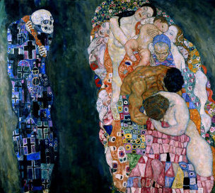 Muerte y vida se inscribe en la serie de obras que Gustav Klimt dedicó a lo largo de su producción artística al carácter efímero indisociable de la existencia. Su precedente más claro se encuentra en Las tres edades de la mujer ,que aunque realizado en 1905, permite apreciar bajo una belleza formal menos agresivas las mismas pretensiones alegóricas.